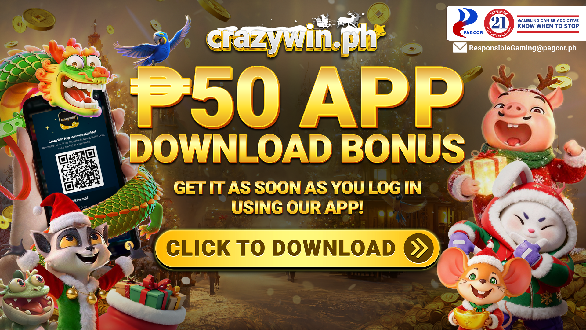 Did you know that you can get an extra ₱50 just for downloading our app?All you've got to do is download the Crazywin app, log in, and by the next day, you'll receive your bonus.